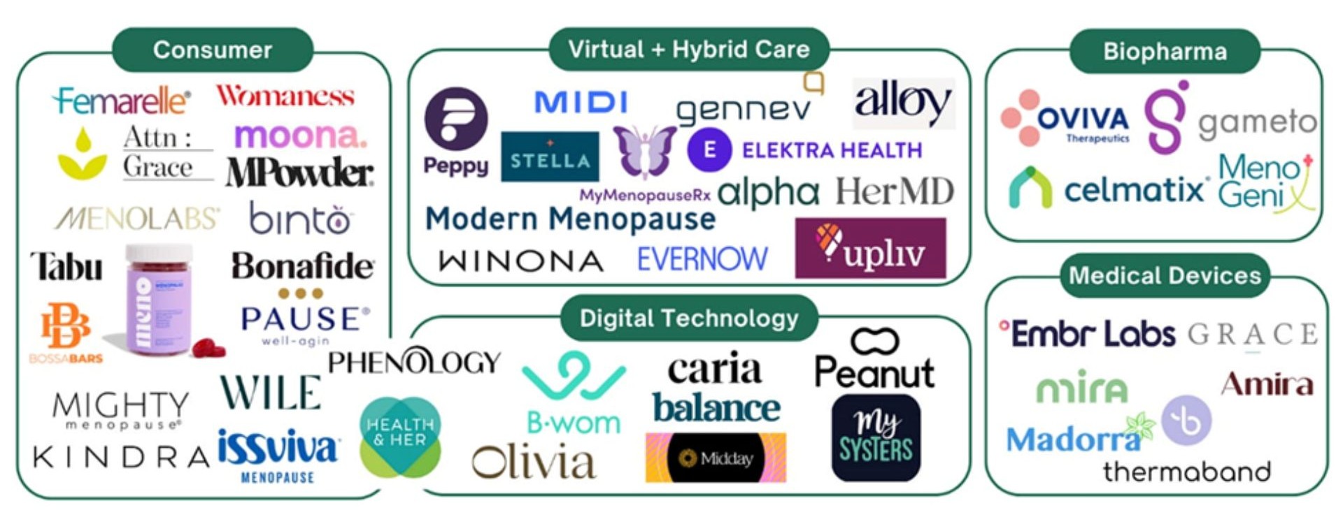 • Digital Technology: Companies like Caria, Balance, Peanut, and B-wom are creating apps and communities that connect women, track symptoms, and provide recommendations.